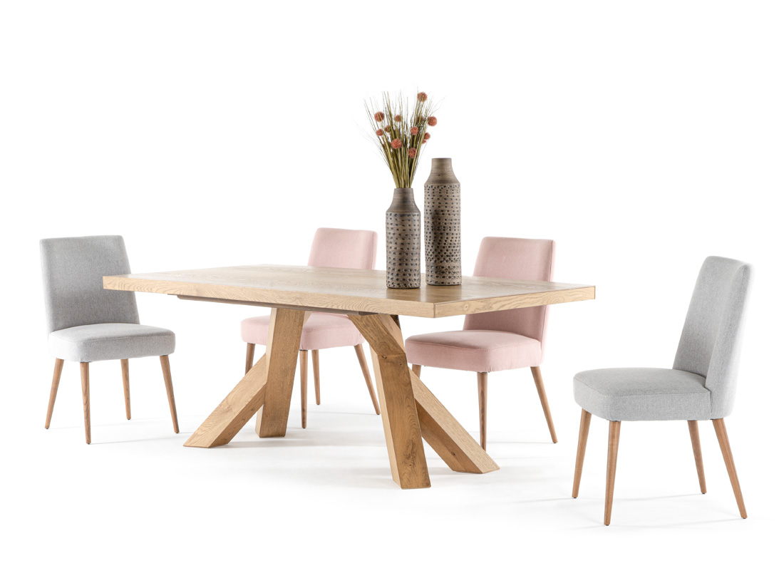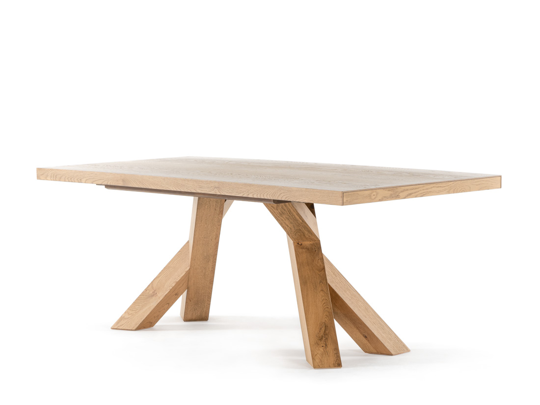 Τραπέζι φαγητού Diamond. Επιβλητική επεκτεινόμενη τραπεζαρία με ξύλινη βάση από επένδυση δρυς ρουστίκ .Διατίθεται με δυνατότητα προέκτασης η οποία αποθηκεύεται εντός του τραπεζιού.Υπάρχει δυνατότητα αλλαγών και τροποποιήσεων διαστάσεων .Διαστάσεις φωτογραφίας 200Χ100+50